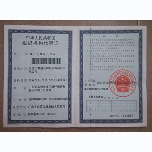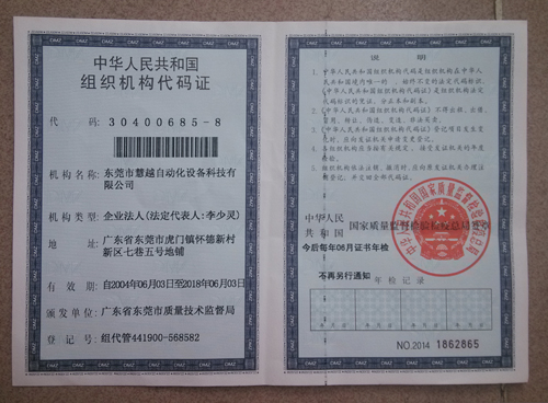 慧越科技組織機(jī)構(gòu)代碼證副本